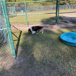 This place is perfect! What's even better is there is no admission fee. FREEEEEEE! It's very spacious and entirely fenced it. Segregated into two sections; big dogs and little dogs. There are community dog bowls, as well as a kiddie pool for dogs. Be wary of the mud pond in the back. Awesome place to socialize the dog and meet new people.