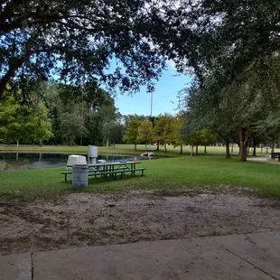 This is a large and CLEAN park. Plenty of parking, really nice wide sidewalks all around for walking the dog or jogging, plenty of CLEAN bathrooms throughout. Several Ponds with fountains. Basketball courts, playground, soccer fields, skate park and free dog park with fenced areas separated for small and large dogs . I stress the word CLEAN because a lot of the local parks around Jax are full of trash which is really sad. This one is well maintained. I imagine it gets super busy during soccer season as it's a Florida Elite complex but today on a winter Thursday Morning it was empty except for a few people at the dog park, some adults practicing soccer against the kick boards, some joggers and kiddie soccer practice on the small fields. There were picnic tables under roofs adjacent to each bathroom but no designated picnic area or recreational area except the soccer fields to speak of.
