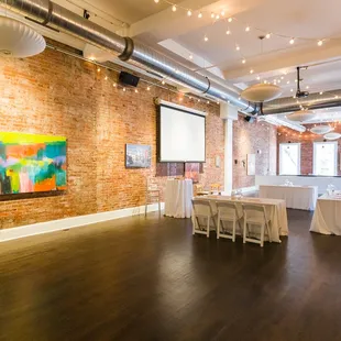 2016 Main Event Space is so cute!! I recently came here for a mixology class. It's clearly a great space for any event you may need it for. They have a kitchen and bar on site. They have local arts work on the walls too. Cute seating nook with dog photography!