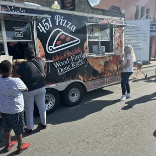 451 Pizza's cute lil food truck made a stop in front of my apartment - had to try it out! Grabbed a slice of plain ole pepperoni pizza as well as a slice of the cheese pizza! There's an art to wood fired pizza and it's safe to say that 451 has perfected it! They have a variety of other unique pizzas (ex: sweet Thai?! Will definitely be trying that next time) and their service is quick & friendly! Highly recommend trying 451 Pizza!