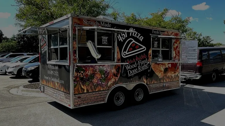 I came across this traveling, wood-fired pizza truck at an Overland Park office event, which was posted on social media and open to the public.My veggie pizza ($17) was ready just five minutes after I ordered at the window, where the service was cheerful and efficient. Your wait time may vary because I was their first customer of the day. The pizza was promoted as 14" (see menu pic), but my pizza measured just 13" x 11". It was very tasty with a delicious sweet Asian chili sauce, but the number of toppings was just acceptable, and I didn't notice any zucchini. I found the thin crust to be perfectly baked, chewy, crunchy and somewhat tasty, with a unique texture.I was disappointed that they didn't offer pizza by the slice.The menu included eight whole pizza options, canned drinks and bottled water, but the prices seemed relatively high.Overall, A-OK.