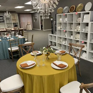 Our experience with this company was just awful. We rented chairs and tableware from them for our wedding ceremony and reception and THANK GOODNESS we had a wedding coordinator to deal with them because they were 1) VERY late and 2) so disorganized that a good chunk of her work was devoted to sorting out the mess they caused. Even though we asked that they make an effort to show up in a timely fashion so our groomsmen could set up the chairs (since the company charges $1 per chair for setup), they didn't show up. The groomsmen had to leave to go get ready, and the deliverymen finally showed up almost two hours after they were supposed to. The men that showed up were smelly, sweaty, filthy and in completely inappropriate clothing. They also dumped and dashed without staying to make sure we had everything we'd ordered. Our coordinator specifically requested that they wait and let her check off everything on the list, but they refused. The boxes and bags were also not labeled, so it was not easy nor quick to check things to make sure everything in our contract was there - which it was not.They also refused to help set up the chairs since our help was gone. Consequently, my bridesmaids and family members had to pitch in and set them up ... and then spray and clean them after we saw how filthy they were. Not only were the white wood folding chairs dirty, they had also been stacked immediately after being spray-painted, so when we unstacked them, the paint peeled off and chipped and they just looked like cheap crap. Several seats were also broken, rendering the chairs unsafe and unable to use - and a couple were BLACK! Not only the issues with those chairs, but also linen order was incorrect and several plates and glasses were chipped and had to be put aside and not used. Then the company had the audacity to come back after the event and tell us more than 20 wine glasses were missing. Well, their deliverymen didn't even ensure everything was delivered in the first place. We returned everything we got, in the condition we received it in, and you can be sure the company, not us, misplaced those "missing" wine glasses. They also dumped the wedding arch and didn't bother to set it up, even though it was specified in our contract that they would put it together. And their stage looks like total crap - we had to cover it up with a white sheet to make it look presentable. The only reason I didn't end up in tears on my wedding day was because of my wonderful coordinator. If you don't want stress on your special day, DON'T use this company.