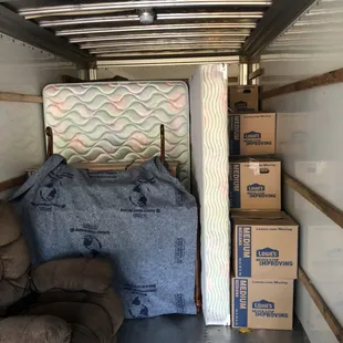 had 3 young men move us from one house to another. one hour to removed all our stuff from old house and one hour to put it into the new one. and we have a lot of stuff!! they even put our bed together for us. the owner came by first and looked at the job to make sure he had the right crew. he did and so did we. Tre, Stephen & Rich did a great job. would recommend them. they were polite and very careful with our furniture. no scuffs, no damage.