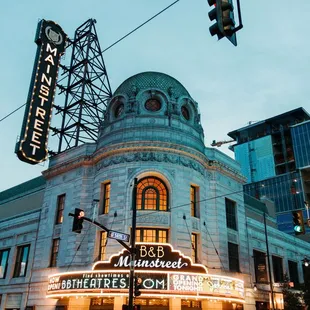 We have been here multiple times when it was the Alamo drafthouse theater and loved their dine in service and fun movie nights like Monty Python night. Currently under B&B they no longer do "dine in "-waiter" service and it is just a "regular" movie theater. They do still offer burgers etc but I feel they are missing an opportunity here as we love to go to a movie downtown then walk over and have dinner. We would just eat dinner there if offered. (More than burgers)However their redlining leather seats are NICE and fully recline! They do offer Pepsi products and not Coke. We will definitely be back!