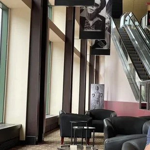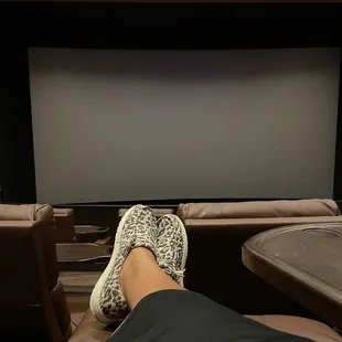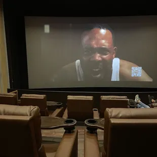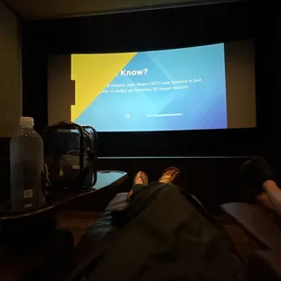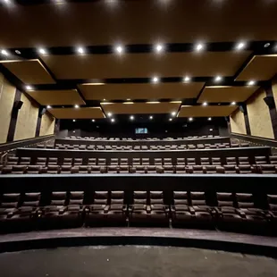 This could've been built into a high class movie theater with some things that needed to be addressed. For the good part, it is in a beautiful building with some history. The food it's offered is freshly made. I got the fries and onion rings warm and great in taste. There is also a Jazz music bar on one corner. The seats are the best! They are leather in texture and soft and cozy, they can also recline to the my favorite level. The attached trays are also clever. Most of the time, when I go to other movie theaters I don't like to hold my food so I don't eat in the theater, but this tray made me feel like I need food in front of me. The not so great part is that the escalator was not in function. But this is not the main problem, for purpose of saving some energy and utility, it can be understandable. BUT, it got the popcorn, food, sauces spilled everywhere starting from the escalator to the carpet on the second floor. Let me wonder is it the quality of the customers not educated enough in this power and light area or the staffs are not told to maintain the cleanliness of the theater. Either one won't help this theater to achieve the goal to sell as a quality theater. Another big problem is that the size of the screen does not fit the size of the movie. That is not professional as the movie theater to play the unfit movie. And one advertisement which the owners of this theater are promoting the charity to help kids, ironically it looks like the husband owner's head is cut while talking, and the height of the screen is about right to the height of the wife owner and another lady friend showing on the screen. I would come more often since this theater is right in the walking distance from my place. But I would consider how neat it is, what the quality I can get from the price I pay to make my decision if this worths my time walking 6min and change the sitting from my sofa to the sofa in this theater.
