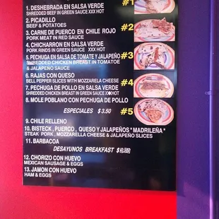 Special #7. 12" tortilla shell, steak, pork, Spanish rice, jalapeños, fried potatoes, onions, cheese and sour cream