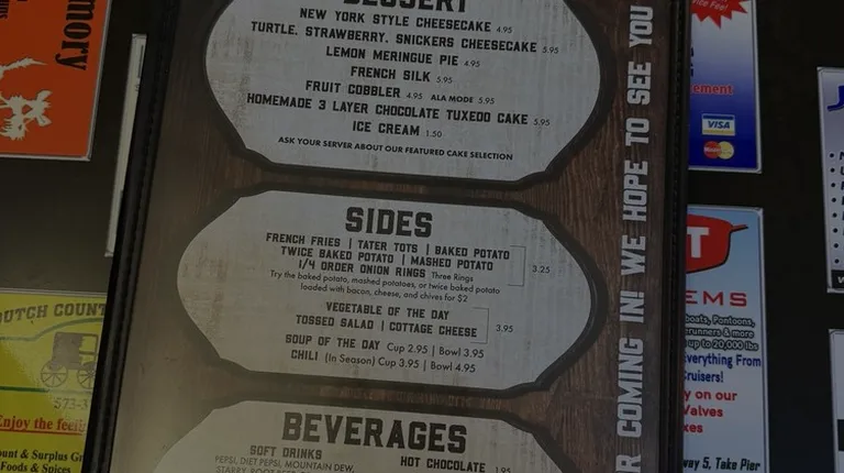 The first thing you'll notice, when you walk in the doors is the heavy smell of cigarette smoke. Nothing special here. Think 70s restaurant. Tons of fried foods. Weight staff seems really tired. We had the chicken fried chicken with mashed potatoes and gravy. Onion rings were delicious. We did get the peach cobbler to go. Very Dowie and two slices of peaches. Nothing spectacular. Definitely convenient if you're at the lake. Also has a large bar next to it.