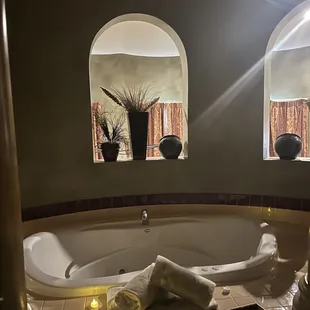 We stayed one night as a gift from a relative and stayed in the Monte Cristo room. The positives is that all the staff were nice and helpful as they could be. The place was generally clean but needs some "deeper cleaning" on overlooked areas. I think that their rooms need to just be redone to come into current times because the themes are just tacky and outdated. When they first opened it may have been kind of cool but now the decor looks old, dated and dusty. I don't know who thought putting the bathroom by the entrance door of the Monte Cristo room was a good idea... because the actual bedroom is on the second floor and in the middle of the night you have to walk down a winding sweeping staircase all the way through the main living area to the bathroom, which is a nightmare. The Jacuzzi was nice but whoever designed that must've designed the bathroom issue! Because the handle to turn the water on is far away from the tub and I feel like someone's going to get injured, even trying to keep testing the water temperature. When we turned down the sheets, there was a baby spider that ran out and the same thing happened when I turned the water on in the bathroom. The shower water smelled like rust. The room and the bathroom were generally clean, but they need to do some deep cleaning in the vents and on the fake plants and windowsills. Our relative had paid to have rose petals and chocolate covered strawberries when we entered the room. The bed was covered with fake dollar tree, looking pedals and they should've just bought one rose and actually put those petals on the bed. There were no strawberries and we had to go down and ask and they said, "Oh yeah we just give them to you when we ask" so that really kind of ruins the surprise for the guest. Also, I do not believe they would've ever given them to us if we would not have asked. When we did ask the strawberries were frozen and the chocolate was some cheap light colored milk chocolate. They said that happy hour at the bar was between four and eight so we went down and it was a very small bar that had cheesy decor and the chairs kept turning when we sat in them and the table was so light that you could almost tip it over. The bartender was nice and did make good drinks, but there was no music and the space was so small that it was just awkward sitting in there with just the bartender and another worker. They had the patio closed off at the bar for a future event. They have an outdoor very large permanent structure tent that was rented for a group and then they used the patio. We had a $25 credit for a breakfast and that was just okay. When I went to use the room phone to ask about the strawberries it did not work so I had to go downstairs and talk to her. In the Montecristo room there are tons of windows since it seems like it's made in a castle form and they all have curtains, but really the light spills through all the cracks so it's extremely light in the room and difficult to sleep and the bed was totally bouncy. We tried to turn the stereo on and only one speaker worked. We can only comment on that particular room maybe other rooms are completely fine?? I think it may be a good place to rent the outdoor building for an event and maybe their basic rooms if you are staying for the event. But the Monte Cristo room with the strawberries and fake rose petals and taxes came to $558 for one night.