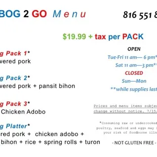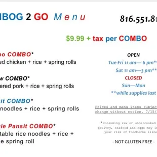 Filipino drive thru food in Kearney, MO? Crazy right? Well, Kearney has grown from a rural farm town to an outer ring suburb and with that comes opportunities to tap into the pocketbooks of the rapidly expanding middle class.Chibog 2 Go is a small drive up only location. The preferred method of transaction is to phone in your order and pick it up at agreed upon time; although I drove up, ordered and then was asked to park in the lot and await a text. Within 10 minutes I received a wave and drove back thru and picked up my combo platter. The folks inside the hut were extremely friendly and helpful in discussing Filipino food and the options.The platter was a large eco-friendly container jam packed with 6 separate items. A large serving of rice noodles (pancit bihon) and a bed of white rice were the base, with a pork skewer, 4 small fried egg rolls (lumpia), 2 pieces of adobo chicken and a fried plantain desert (turon). This was my 1st experience with Adobo Chicken and it was the highlight of the meal. Fall off the bone tenderness marinated in a gravy like vinegar and garlic based sauce was a joy to eat. The only drawbacks were spending $25 for lunch with tax and tip. Great food and a healthy portion but the sampler platter could be a little more economical I believe. Also, without a dining area, it creates an issue trying to find a picnic table or make a mess in your vehicle if you don't work or live in the area. A great option if you're headed to Watkins Mill State Park for a picnic.