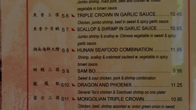 a menu for a chinese restaurant