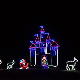 The line can take 2 hours. No restrooms on the way.Pack cookies and hot chocolate. Turn on the Christmas songs and it seems like just minutes.Not just decorated trees! Animated light display.Santa is there!
