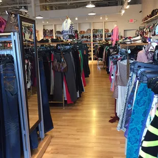 I was briefly impressed when I found this store a year ago or so; the last few times, not so much. The clothes are jammed in so tightly it's hard to look at them. The shoes are scattered and not organized. Customer service? Well, if you consider saying "hi" when I walk in, and "Bye" when I leave customer service, you're set. I carried a few pieces around the store, and had to assist myself to get a dressing room. When I came out to hang my rejects, the employee walked right up to me and didn't say a word.Lower end brands are well represented here; there are a lot of purses, that say they are Coach or another name brand.To be honest? I found better quality (and MUCH better prices) at the area Goodwill store. Many of these were clearly 'shrunk' from washing, and fading. That I would expect at Goodwill for $4.00; not here for $20.And yes, my visit to a similar store in St. Louis (see reviews) did spoil me, but I wouldn't hold all stores to the standard they set.