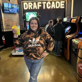 We are a family of video game players, board game players and arcade game players. When we go out of town, we always look for a new arcade to try out. For less than $10 a person, you can play all the old arcade games that you used to play as a kid;unlimited. This is the best deal we have had, since they don't put a time limit on it. Some of the games didn't work but most of them did. They had a great selection - not 60 like they claim and no shooting games . The specialty entrees were good, better than normal bar food but not the best I've had. The ultimate bean dip was not seasoned in the slightest and I've had better mozzarella sticks everywhere else. The bbq wings were nothing to write home about. The chicken nuggets were okay - fries were not. (Maybe if they were crispier). The burger was amazing and cooked perfectly. The tater tots were the right crispness and didn't have too much salt. This was the best part of our meal. I expected this establishment to be way louder, and I'm sure it can get that way but at 2pm it wasn't too bad. The establishment was clean and the bathrooms were the best I've seen "EVER" in a bar. The server seemed busy but was attentive enough and got our orders right. Draft Cade is known for their draft beers on tap and have a decent selection of specialty drinks. We arnt able to drink (I have epilepsy) so I don't know if they were good or not but other patrons raved about them (about 60 types to try from) I gave this place 4 stars because of the foods not being seasoned that much. We had a fun time playing the "old" games and will think about coming back.