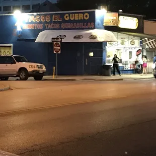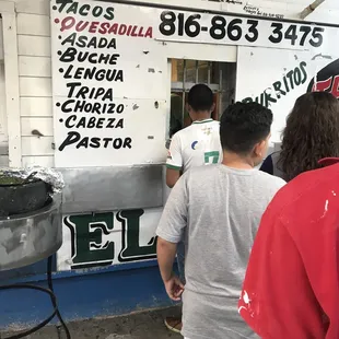 My 1st attempted visit to El Guero was a Saturday afternoon several years back, only to find that they do not open until 6pm. On my second attempted visit, I found that they do not have seating, so my buddy and I traveled on down the street. On my third attempted visit I realized that they only accept cash, so once again i moved along rather than go find an ATM. Last night I was prepared with cash in hand at 9pm and driving a truck with a tailgate I was destined for an authentic St John Ave. Friday night.I ordered my standard 3 tacos - 2 pastor, 1 asada and waited along the sidewalk with the other locals. In about 5 mins my plastic bag was being passed through the bars on the walk-up window and I proceeded to my tailgate to spread out my miniature feast of $7.50. Along with the tacos I was given 2 sauces (green avocado and red heat), a bag of radishes - way too many, and a packet of grilled onions and jalapeno; just as a true taqueria should serve.The tacos were very good but not as life changing as some have reported or as good as many other places have served, in fact the pastor was a tad stringy and chewy. I did like the overall experience of a tailgate party for one, along with multiple other trucks and customers along the street while listening to mariachi music blaring from a random vehicle, watching KCPD zooming by with lights pulsating, street bikes and hotrods doing burn-outs while families sauntered down the sidewalk. It was easy for my mind to wander back to scenes of late nights and street food in my travels to major Mexican metros of years past. Go for the food, stay for the show - not for the faint of heart.Food - 4 starsAuthenticity - 5 stars