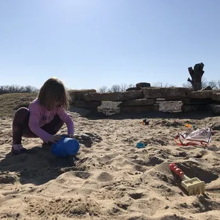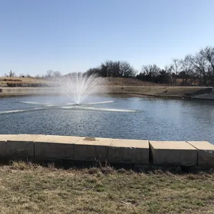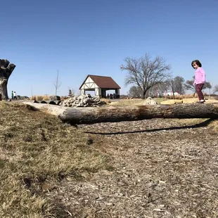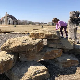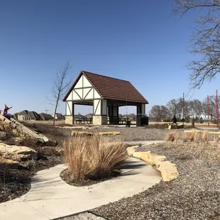 Wow! This park is so cool! First off, it's huge. So much room to run. A large portion of it is mowed grass, but they've done a lot of prairie landscaping and left some of the surrounding fields to work their magic. I can only imagine how pretty it is in the spring and summer. The playground consists of a huge rope climbing structure, swings, a slide, sandboxes, and a massive nature play area consisting of large rocks and logs to climb on. My daughter loved all of it! This playground would even appeal to kids who say they're too old for the park, but really know they aren't. ;)There are two covered picnic shelters. They are amazing! Since this park is a tribute to Shawnee's sister city Erfurt, Germany they are made to look like buildings in Germany. They are both good sized. One has bathrooms, a drinking fountain, and a working fireplace. The other is just tables, but still very nice. There is a long concrete trail that wraps around the park. There is also a fountain and pond. There are several drinking fountains and benches. In the winter they bring in a porta-potty for public use since the real bathrooms are closed in the off season.The only downside to this park is the lack of trees. In the summer I can only imagine how sunburned you'd get hanging out without any shade. Perhaps they will plant some or add those mesh sun screens you see at some playgrounds. If you're in the area make sure to check this place out!
