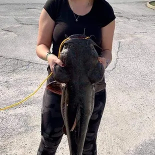 The Flathead I caught at Jacomo off shore with nightcrawlers I bought at 40 woods.