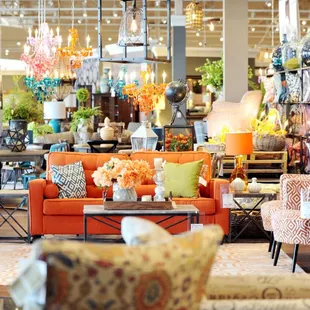 I came to this place desperately seeking a couch, and I found one! With very amiable help from the greeters at the front door, the very patient upholstery specialist who was called over to me to help with the process of seeing all the possibilities then narrowing down my options then ordering it, and the person at the desk who finished my transaction. The showroom is set up loosely by area of the home to furnish and is very detailed and expansive. They carry a lot of variety of products and styles but all seemed to be of a high quality that I would want in my home depending on the style I was going for. We did not even go through all the store as we were focused on the living room areas at the front. They have large smart touch screens throughout the sales floor to let you swipe through and get more details about their catalog offerings. While we were finishing up the purchase, our saleswoman went and brought back a complementary home-made frozen custard and cookie cup from the café at the front of the Furniture Mall. it felt like very personalized and friendly service, and was not overwhelming at all! wonderful.