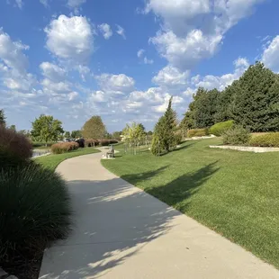 Beautiful little park built originally as a separator between residential property and a grocery center. Happily, it seems to work. Nice place to take a walk, walk pets, bring the kids (there is a playground), or just sit on the many benches.In the summer, it could use a bit more shade, but the trees and other plants are growing.