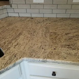UPDATE: Global Stone came back out, removed the countertop (what was originally pictured), and laid new countertop down. They took much more pride in their work this go around & the pictures prove it! The flow is nice, the granite pieces match, there's no gaps between the counter & backsplash, and they brought the matching caulk to caulk along the backsplash. They worked hard in making things right and they succeeded! I am so thankful they listened to our concerns, agreed they could do better, and went beyond our expectations. Our kitchen looks great and I couldn't be more pleased with the ultimate outcome. Thank you, David, for turning this bad experience around by providing dedicated employees who were committed in seeing this job through to the end the right way. It's easy to do a great job the first time & call it a day. It's really tough to have a bad review, agree, own up to it, AND make it right. I'm very impressed how the aftermath was handled. Thank you from the bottom of my heart.