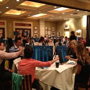 The seats weren't preassigned on public night so get there early to grab one especially if you're meeting someone there. As a project manager, I can appreciate someone who takes care of all of the details. After a chaotic day, all I had to do was show up. Literally. Just bring your wine and snacks. It's been a very very veryyyy long time since I've picked up a paint brush. I'm still amazed that I was able to create this beautiful master piece. Overall, we had a great time. Our instructor Steve made the session seem effortless, fun, relaxing and all of that good stuff. It helped that he was very upbeat and personable. Happy Painting. Cheers.
