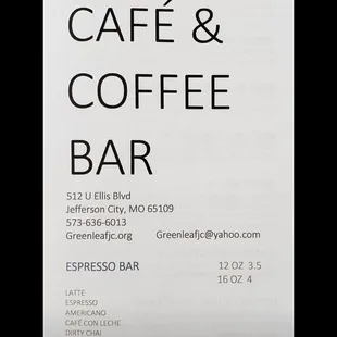 Menu drinks