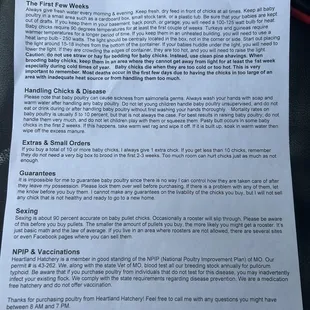 Got chicks from here and half of them died or had birth defectsCustomer service is non existent and they don't stand behind their stock, most likely if you complain they just give you more messed up or half dead or sickly chicksWouldn't recommend this place, been ordering chicks for decades from all other hatcheries and never had such low quality chicks and so many birth defects as heartland hatchery