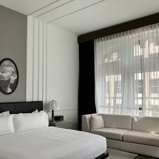 Truly have nothing bad to say about Hotel Kansas City! I stayed here for 2 nights for a work trip; what an amazing hotel to stay at! I wish I could've stayed here for even longer (lol). Upon arrival, you are greeted by valet. They were so good about holding the door open for you every time. Once inside, the employee at the front desk was beyond sweet when checking in. It was also super easy to check in and out after my stay. The lobby took me aback - there's a HUGE beautiful chandelier / light fixture above, with a classy old school-vibe bar. This hotel has a lot of office space, venue space, etc., so it's used for more things than just being a hotel. There's also a little cafe located on the lobby floor, too.The whole hotel was a vibe - historic, yet up-to-date and trendy. I absolutely loved my hotel room. The bed was HUGE and comfy, the bathroom was gorgeous, and the room was clean. It had a little nook, too, which I thought was different and cute. It had a TV, a closet, 2 night stands, and was more than spacious. The location of the hotel was smack dab in the heart of downtown Kansas City which was the perfect location.This hotel has a lot to offer and I had the most comfortable stay here to say the least. If ever back in Kansas City, I'd love to stay here again!