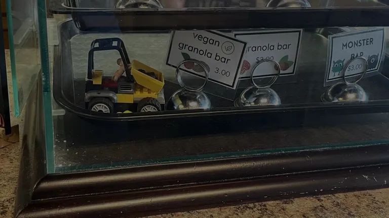 Neat mural and nook that is great for moms trying meet up. There are toys and games for kids! On the left you can see the roaster!