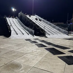 "Snow tubing" with flood lights.