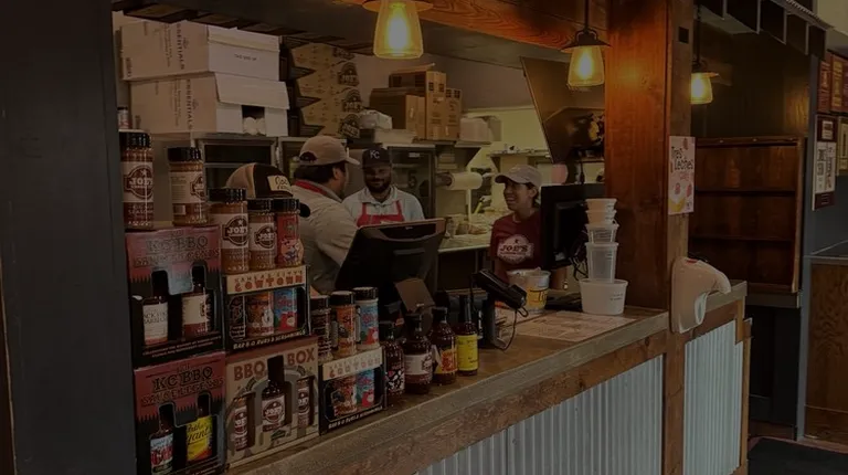 This was my first Joe's KC BBQ experience, and this location did not disappoint! Even going at the height of the lunch rush, I was pleasantly surprised to see how quickly my group of three was taken care of. The food was absolutely delicious and was easily some of the best bbq I've had in Kansas City. Even though the restaurant was busy, I wouldn't think twice next time I wanted to visit. The restaurant has a classic rustic look and feel to it. To order, you stand in line, place your orders, and then pick them up down the counter. Since it was bustling when I went there, someone directed us to an empty table, but that was it. There was no fuss, and the food came out extremely fast and hot. Recommend for a KC BBQ experience!