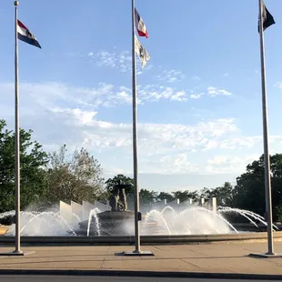 A beautiful fountain in the "City of Fountains." This fountain is a memorial for fallen firefighters, and it has a relaxing, moving presence to it. It happens to be on one of my cycling routes, so I've seen it at all times of day. Right when the sun is coming up over the city, at night when it's often (always?) lit up, and everything in between. On select days I'll pop over to it just to circle around and take it in. I love that it's at a figurative doorstep leading into downtown KC, and from there the layers of the city keep unfolding. Head a little north and you'll be at the Liberty Memorial, then Union Station, then the Crossroads, downtown, and the City Market. It's also nice that it's along the busy 31st street near Broadway so you can catch it even whizzing by in traffic.In a city with a lot of beautiful fountains, this is another notch in the belt, and a good one to take in if you're nearby.