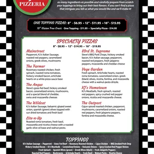 The is a quaint little local place just on the west side of the KC metro. In full transparency - I look for 4 major things when it comes to pizza: 1- Green olives2- Hearty, tasty sauce3- A crust with some substance4- Green olivesKJ's has it all - including green olives! Not enough places offer green olives and this is a huge miss in my opinion. The pizza has always been ready on time and the service has been very friendly. Support this local business and get the green olives.