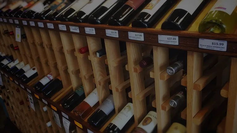shelves of wine in a store
