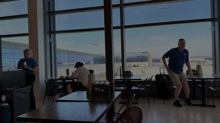 Okay, so I was pleasantly surprised. The food was a lot better than I expected being inside the airport.Conveniently located and with good views. Prices weren't that bad as well. I had the brisket chili and the pulled pork sandwich with coleslaw and pickles.The service isn't that great, felt a little more like a burden.I would eat there again.