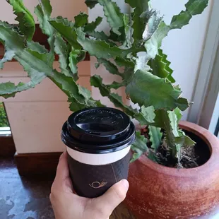 Decaf Latte and a cute little cactus