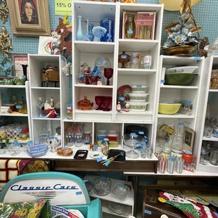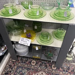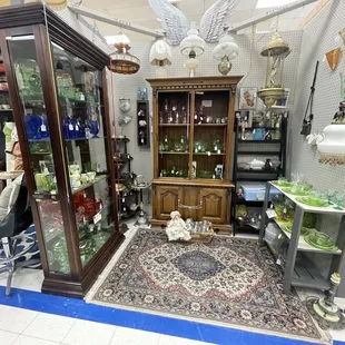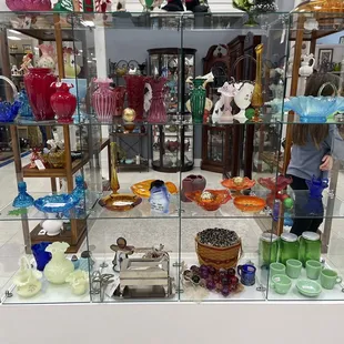 Amazing store for depression glass! I took home super HTF fenton blackcrest candle holders and some blue fostoria. Excellent prices. Below eBay sold prices in many booths. Nice size. Nice staff. I could spend 2-3 hours easily.