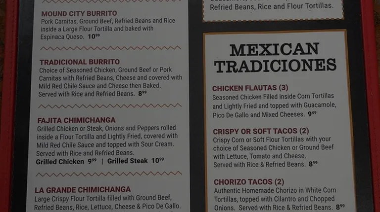 Great choices of Mexican offerings including combos and unique local concoctions. The Mound City Burrito is a super choice. Personally, I rate Mexican restaurants a lot by how I like their chips & salsa. Mi Ranchita's is one of the very best I've tasted and I have 70+ years experience Ask them for their hotter salsa and mix their house salsa with it 1/2 & 1/2. BTW, the atmosphere and the service matches their food!
