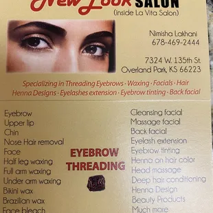 Wonderful experience (yes, I did say wonderful!) including Brazilian wax, facial and eyebrow threading. Nimisha was very kind and gentle. Salon is within a pod of suites so it's small, intimate yet private.
