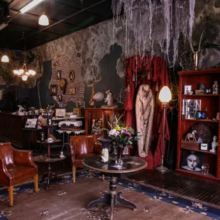 Really interesting place. Especially if coffins, spiders, and doll heads are your thing. Had fun looking at the oddities, ended up going upstairs to check out the antiques. Ended up getting a Paris WWI postcard book. Neat place.