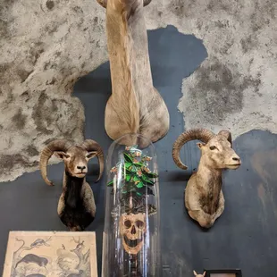 If you like unique you came to the right place! This place redefines noir. The shop is full of old authentic medicinal bottles, formaldehyde containers, skeletons, anatomical diagrams, medical pictures, artwork, shadow boxed bones and animals, and a myriad of other very amazing displays.The owner is so friendly and helpful, she really could probably get you anything your heart desires in this vein of interest. The prices very from low end to high end depending on the rarity and complexity of the items in the shop. The higher end items being some of the bigger skulls, shadow boxed creatures, and preserved specimens. Some of the lower end items include bottles, jewelry, shirts, and art amongst many other things. I have been in here twice in the last few months and the merchandise changes often so if you see something you love, your best bet is to buy it soon!