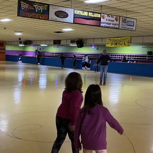 This was a pretty good roller rink. The staff were all friendly and good and attentive. For example the young woman who was patrolling the roller rink itself and skating along with everyone was very good at making sure kids didn't get hurt and that everything was safe, but she was polite about it and not overly policing, which is unusual at a roller rink. It was reasonably clean for a roller rink and in good repair, though clearly on the older side. Pricing was reasonable and the skate trainers (walker thing to lean on while learning) rental for $2 were very helpful. They have plenty of seating for grown-ups -- carpeted bench all along the side, and a concession area with picnic tables on the one end. My spouse thought the music was too loud and it was a bit torn up, but I thought it was fine. Parents who aren't skating don't need to pay, which is refreshing and family friendly. They have an air hockey table which was helpful because my 4.5 year old was a little young for this and needed something else to do after skating didn't work out too well. They also have a whole bunch of those (annoying to parents) things to put money in and hopefully capture a little toy. Plenty of cubbies for shoes, but I didn't see any lockers or larger spaces for backpacks or larger possessions. They have a water fountain, also helpful, this was great exercise!! I would definitely come here again.