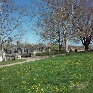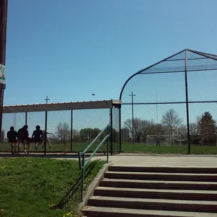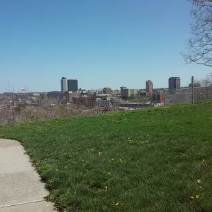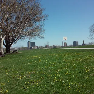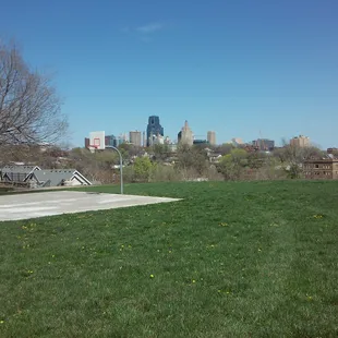 Basket ball court, playground, benches, one grill, drinking fountain, baseball diamond, soccer field, swings and a five star view of downtown Kansas City. As an elevated point in Kansas city it's perfect for kite flying. Parks and rec do a good job keeping it clean. The surrounding neighborhood has Lots of kids so usually a game of softball or kickball is going on.