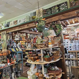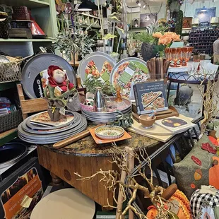 I came in here with my sister looking for a Depression Green glass measuring cup. I saw one on a cooking show (Delicious Miss. Brown) and fell in love with that cup. To the Google I went to see what it was and found out it was from the 1930's and made by the Kellogg company. My sister said they might have it. She loves this place so much they know her. When we walked in, we were offered tea, water or coffee. I had some peach and hibiscus tea. It was delicious. My sister had coffee. Upstairs is more newer things. They did have mini Dutch ovens which I'm going back for. Downstairs, they had all the glassware. While they had the vintage looking Jadite things, no measuring cup. It's still a lovely store and I will be back!