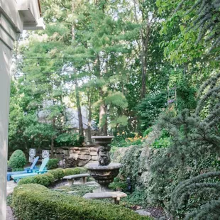 steps leading to a stone fountain