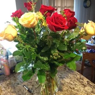 Beautiful arrangement of a dozen roses