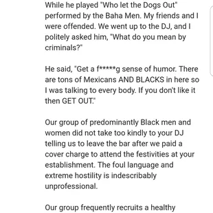 Had to pay a 10 dollar entry fee for the entire place, which wasn't too bad... hopped over here after 'No other pub', and what a horrible choice that we did. Only reason it had a 2 star is because I liked the music, but it could have a smoother transition between each song. Floor was extremely sticky, understandable since people probably spill. But most service was ridiculous... my friends and I went up for drinks, called the bartender guy, and pretty much said, 'hold on, they came first'. Okay, understandable, so we waited like good champs, but when he came back, he took two other guys' order when we were standing right there. It wasn't until we made a really loud comment that he turned his attention to us, otherwise he might as well passed us up ... again! So much for feeling welcome to KC. Review 4 of 2018