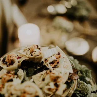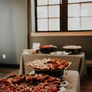 Shining Stars did our wedding this past weekend, and the food was a hit! We did interactive stations with a salad, meat carving station with sliders, and mac and cheese bar. I still have people coming to me to say how awesome the food was! They also had their pastry chef do a donut hole cake tower for us, and offered to cover for a reveal for when we did our little 6 inch cake cutting on the top. I left some air plants and floral pieces, candles, eucalyptus out for them and they stepped right now and made the table look amazing. Thank you for the quick reply emails, meetings and AMAZING food!!