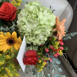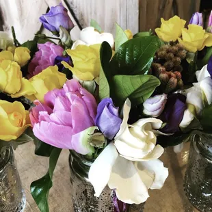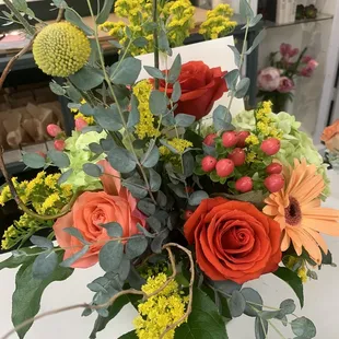 Flowers are gorgeous. Such a cute shop, and the service was great! Giving four stars instead of five for two reasons that aren't entirely the shop's fault. I got a custom order asking for lots of orange flowers and got more red than orange. This could have been due to availability, and they still look great. I picked the flowers up to take to a friend, and the vase was so full that it spilled in my car before I got out of the parking lot, ruining the box they provided for easier transport. I'm sure I could've dumped out some water and gone back in for another vase, but I didn't have time. Overall, very pleased and great quality!