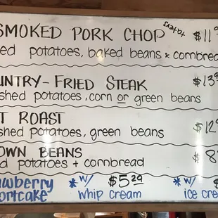 EXCELLENT BPT, HAM AND BEANS, FRIED POTATOES, CORN BREAD