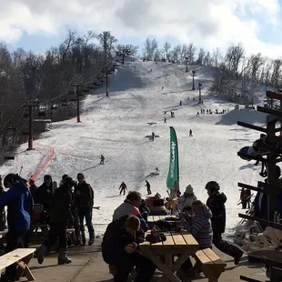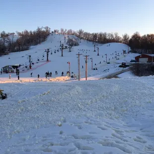 This is a great place for learning to ski. Beginner section really full.Here are some short sweet comments from our crew (6 of us, 3 ski/boarders and 3 tubers) and people we met:Bring your own drinks, $6-7 for a bottled drink is crazy, $3 for a fountain with no refills.The bar and pub never opened. Fireplace not on until 2 pmThe slopes were not groomed .Slushee slopes.Short runsSuper nice lady in the gift shop.Bathroom stalls are tiny (women's)Inexperienced ski equipment workers. No one's skis popped off, tons of injuries.Love the cubbies for shoes.Tricky competition was neat to see, but they didn't put it on the tv in the lodge for friends to watch.Tubing is a joke, no snow! Should have been shut down. No refund when requested to one of our crew.Dates: 1/30-2/2
